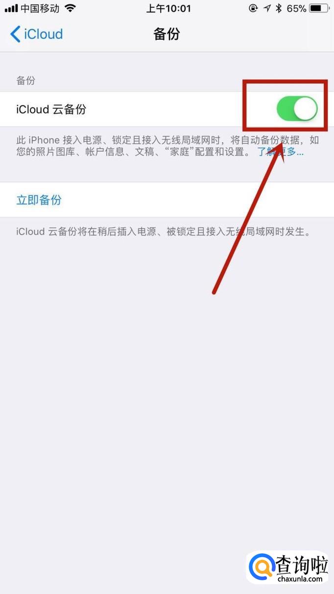 接着点击关闭iCloud云备份开关,如下图所示。