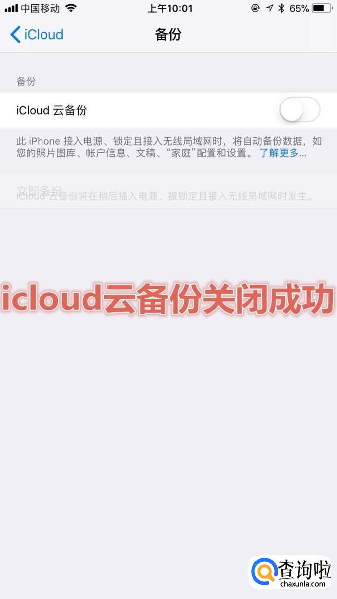 这样iCloud云备份功能就关闭了。