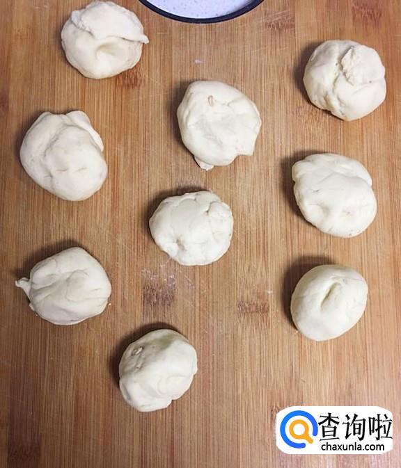 把发酵好的面团揉成一个长条,揪成若干个小段。