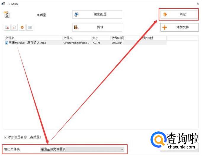添加完成后,设置好相应的输出配置和输出文件夹,点击确定。