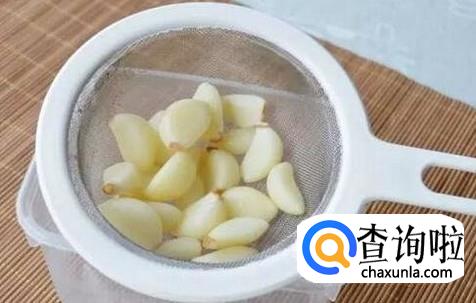 之后再把蒜瓣用开水浸泡几分钟,这样去一下生。