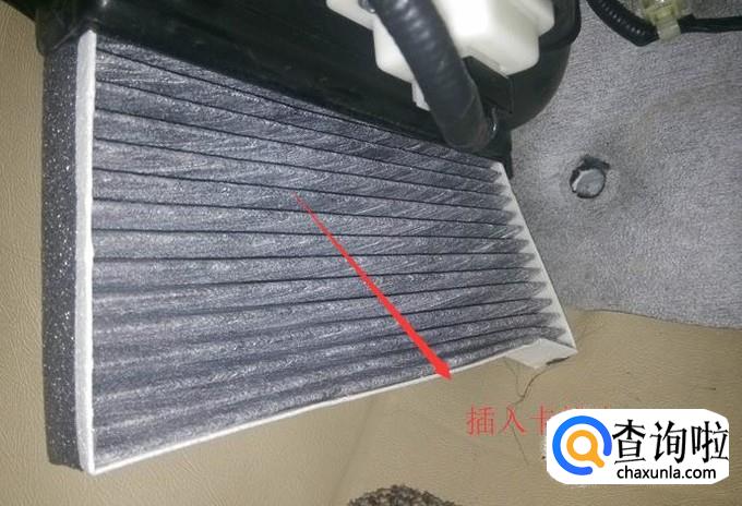 将新的空调滤芯插入到卡槽内,满满的往里面推即可,完全推进去以后我们盖上卡槽盖即可,如下图所示