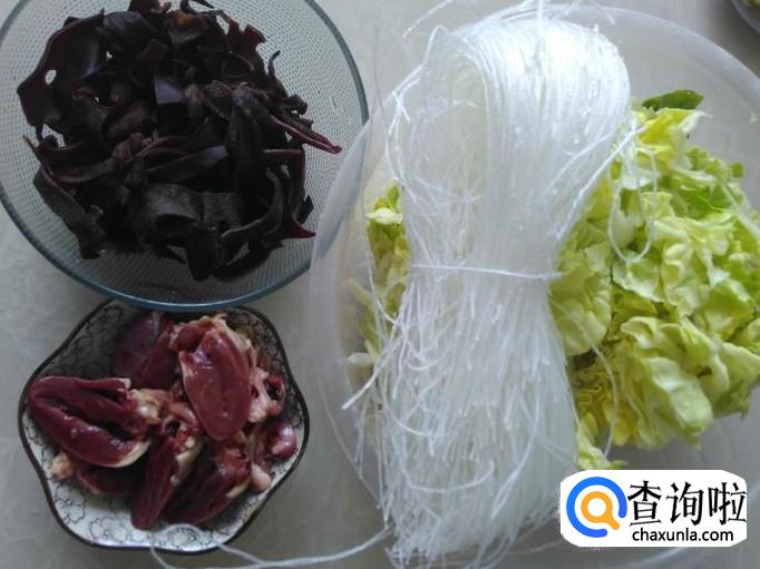 粉丝、娃娃菜、鸭心、木耳准备好。
