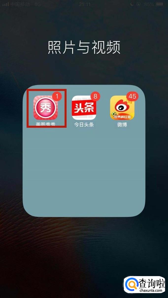 首先在我们的手机桌面上找到美图秀秀,并点击它,如下图所示。