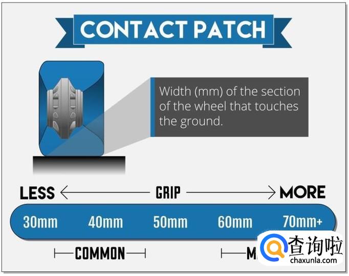 轮子与地面的接触面积,面积越宽,橡胶分子与路面接触越多,抓地力就越强,滑行时你就会越平稳,适合萌新,刷街玩家