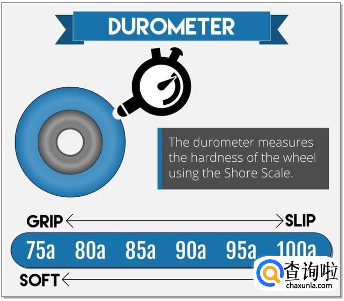 轮的硬度,越软越有弹力,75a-78a属于柔软类型弹性极高适合豚跳,80-87a适用于Freeride长坡下降的过程中漂移,转体; 90+适用于滑板公园横刹时快感无法言喻