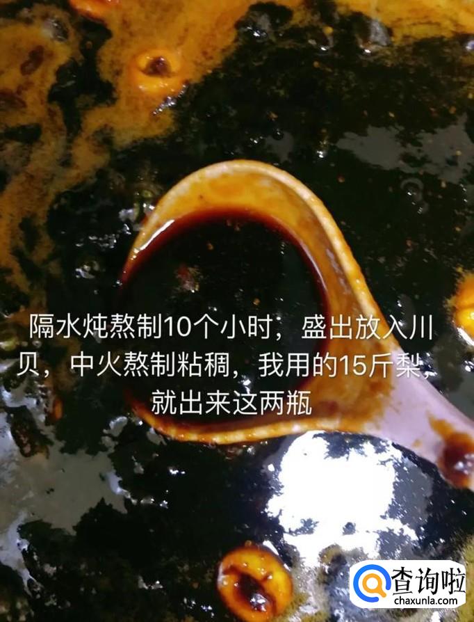 接着用隔水炖的方法熬制十个小时,放入川贝,中火熬制到粘稠就可以了。