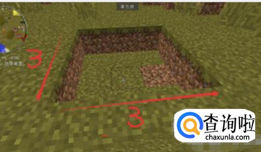 然后在地上挖一个3×3的坑,一格深就足够了,注意这一步非常重要,否则下面将激活不了末地传送门。