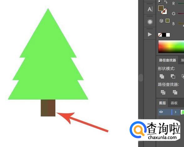 接下来就是我们绘制阴影的方法了,先以树干为例,选择“矩形工具”在需要添加阴影的位置绘制一个矩形,颜色要比树干深。