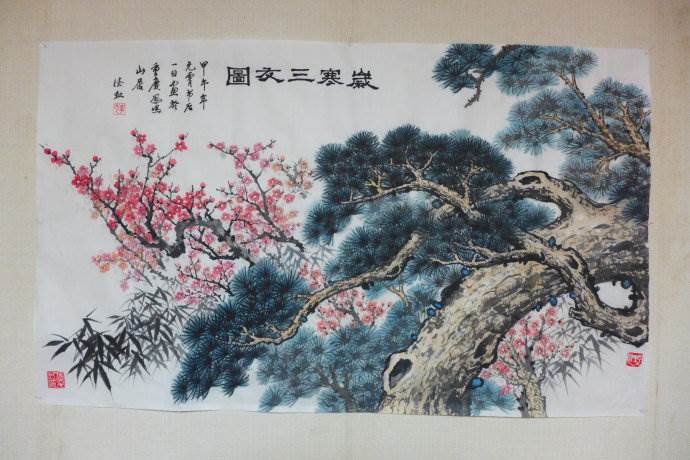 《岁寒三友图》最先出自宋代赵孟坚,后来有不少人模仿绘画。该图放在今天,是有非常高的历史价值的,从艺术上,也有极高的艺术价值。岁寒三友指的是在冬季不受风雪影响而开花的梅花、在暴风雪中宁折不屈的竹子、在寒冬依然苍翠欲滴的松树。这三种植物被统称为“岁寒三友”。