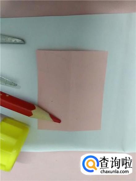 先将彩纸向右对折一下。