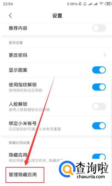 然后选中“管理隐藏应用”,即可增减想要隐藏的应用。