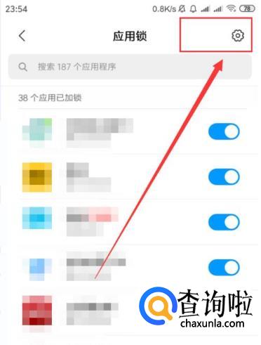 在“应用锁”页面中,点击界面右上角的齿轮图标。