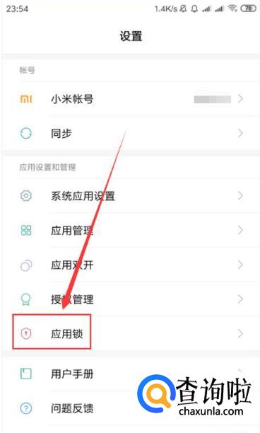 进入手机的“设置”页面中,选中“应用锁”。