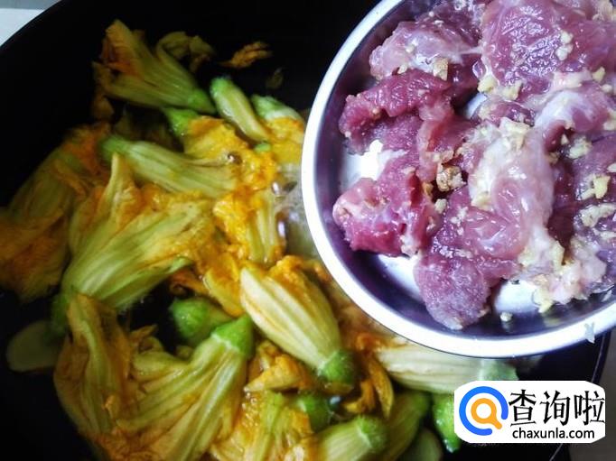 南瓜花200克,瘦肉100克,姜蓉适量,1勺料酒。