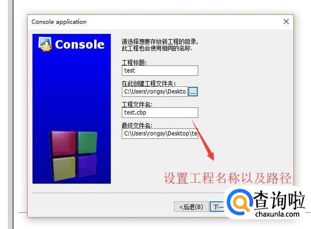 接下来就需要给控制台项目起名字,并且设置项目的存储位置,如下图所示