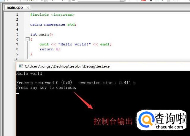 最后我们就可以看到弹出来CMD控制台输出我们程序中写入的信息,至此一个C++控制台程序就创建完了