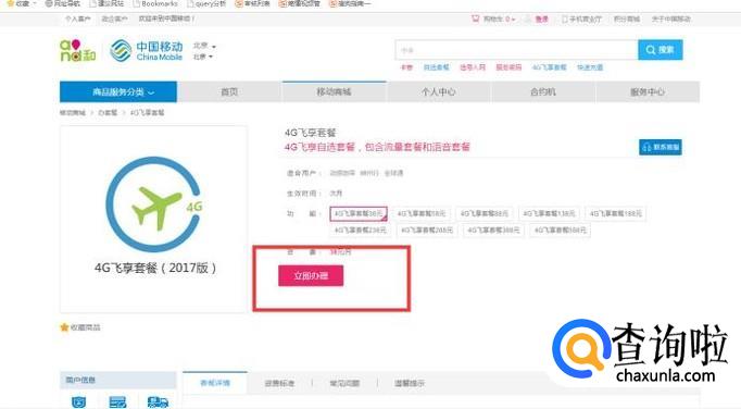 在新的页面选择想要办理的套餐,可以选择一个最便宜的,进入新页面办理开通就好了。