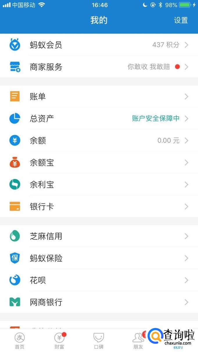 接着点击余额,如下图所示。