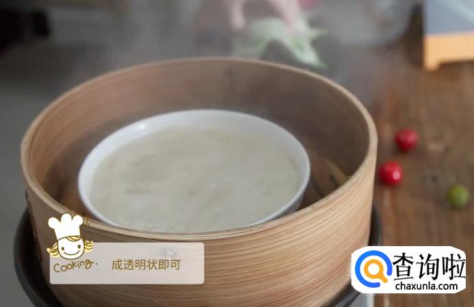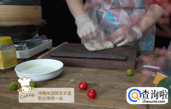 蒸至糯米团变成透明的样子,就可以取出来了,静置在一旁放凉。