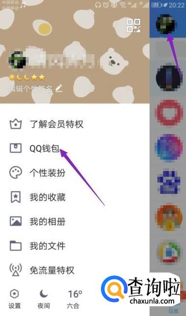 我们打开QQ,然后点击头像,之后点击QQ钱包;