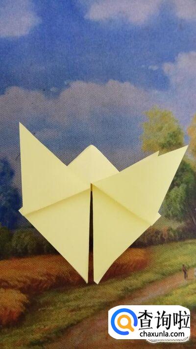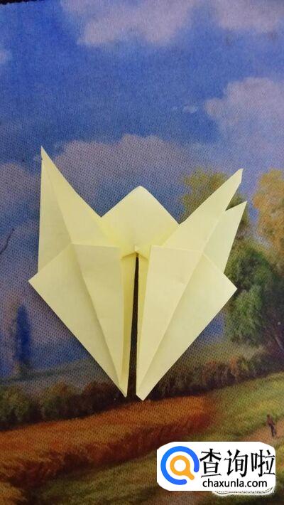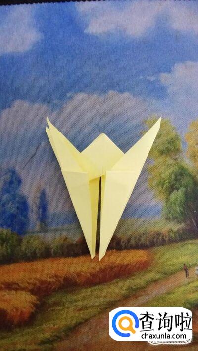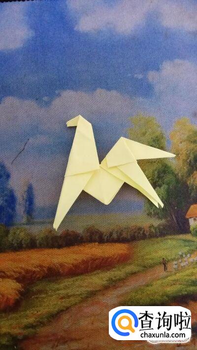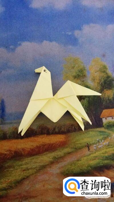 将右边的上方,向下折一下,折出马的尾巴,可以稍微长一些,将左侧的上方也向下折一下,折出马的头部,并画上马的眼睛,可以把嘴巴部分稍微剪掉一点,马的嘴巴不是很尖,整理一下,这个小马是可以站立起来的,非常可爱。