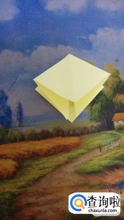 将下面两个角分别对折,如图所示,另外一面也按照同样的方法操作一下。