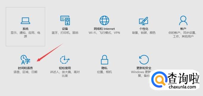 来到了设置,我们选择“时间和语言”,如图。