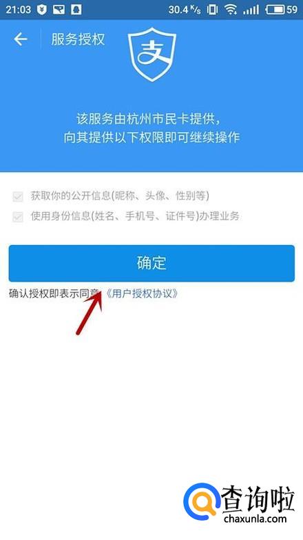 点击“确定”进行服务授权。