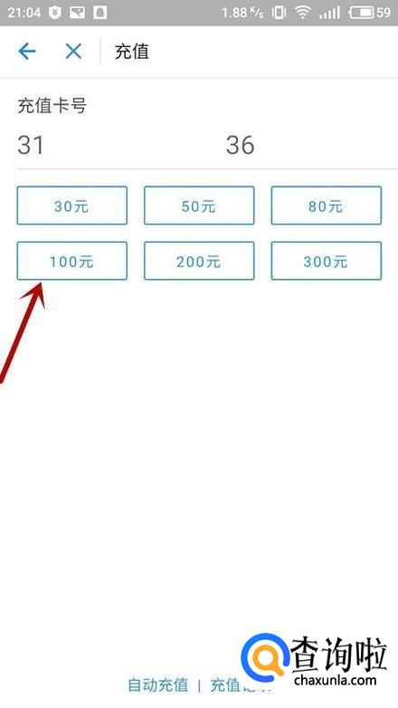 确定充值卡号,点击充值金额。