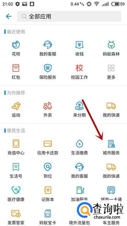 在服务中选择“城市服务”