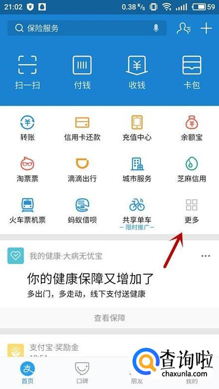 进入支付宝APP界面,选择“更多”