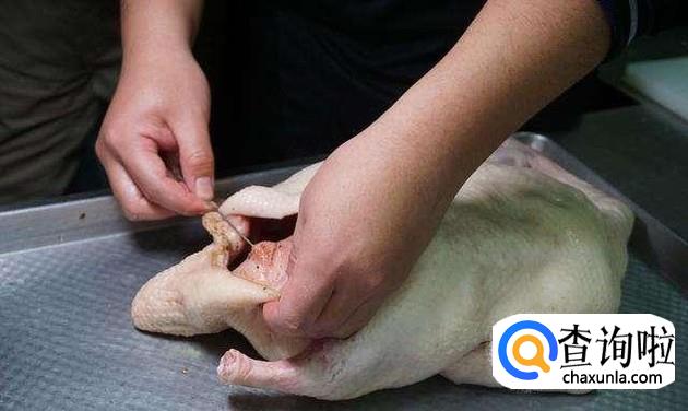 24小时后将腌制好的鸭子取出,放到阴凉通风的地方将鸭风干,风干至表皮干燥透亮,用手挤压不出水。
