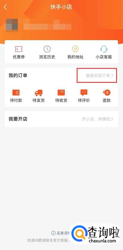 进入“快手小店”,可以看到“我的订单”,直接点击“查看全部订单”。