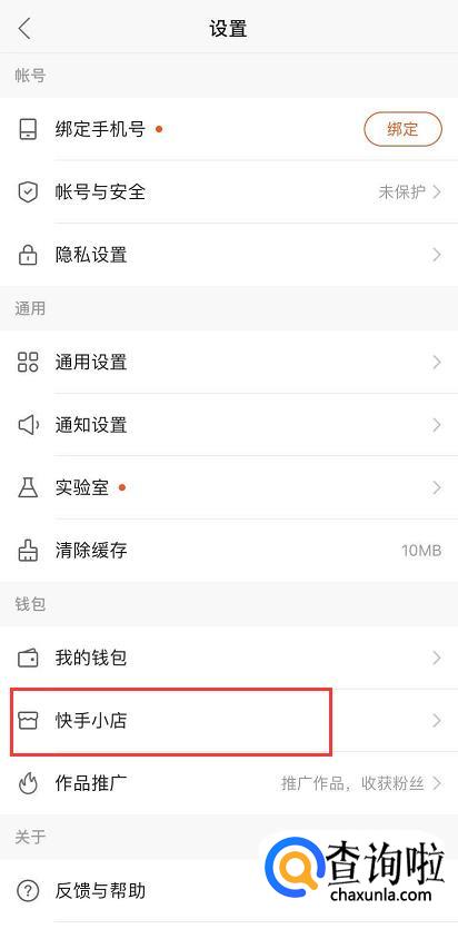 进入设置界面,然后点击“快手小店”。