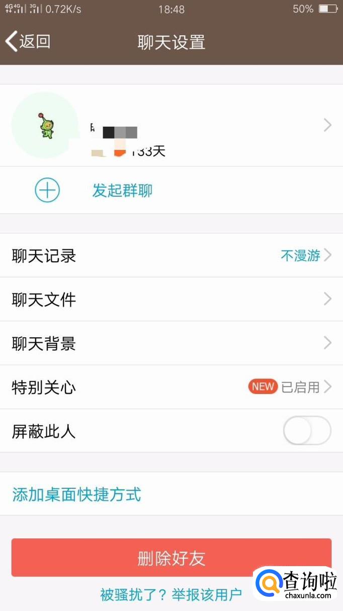 点击之后就会进入该好友的详细操作界面,在这个界面就有“聊天记录”的选项,点击进入删除聊天记录的操作。
