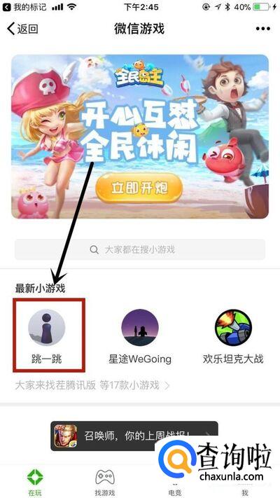 然后点击小游戏跳一跳,如下图所示。