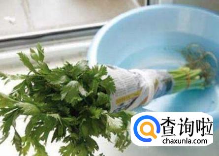 将芹菜捆在一起,用报纸包住,中间部位,然后根朝下,放到水里泡着,一般可以保鲜5-7天。