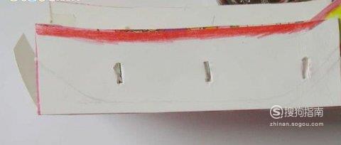 将纸箱剪成船的形状,中间有点凹陷,然后在纸盒边上打上船浆的孔。