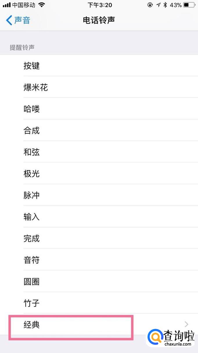 如果这些铃声你都不喜欢,可以点击最下方的经典,选择其他的铃声作为你的铃声。