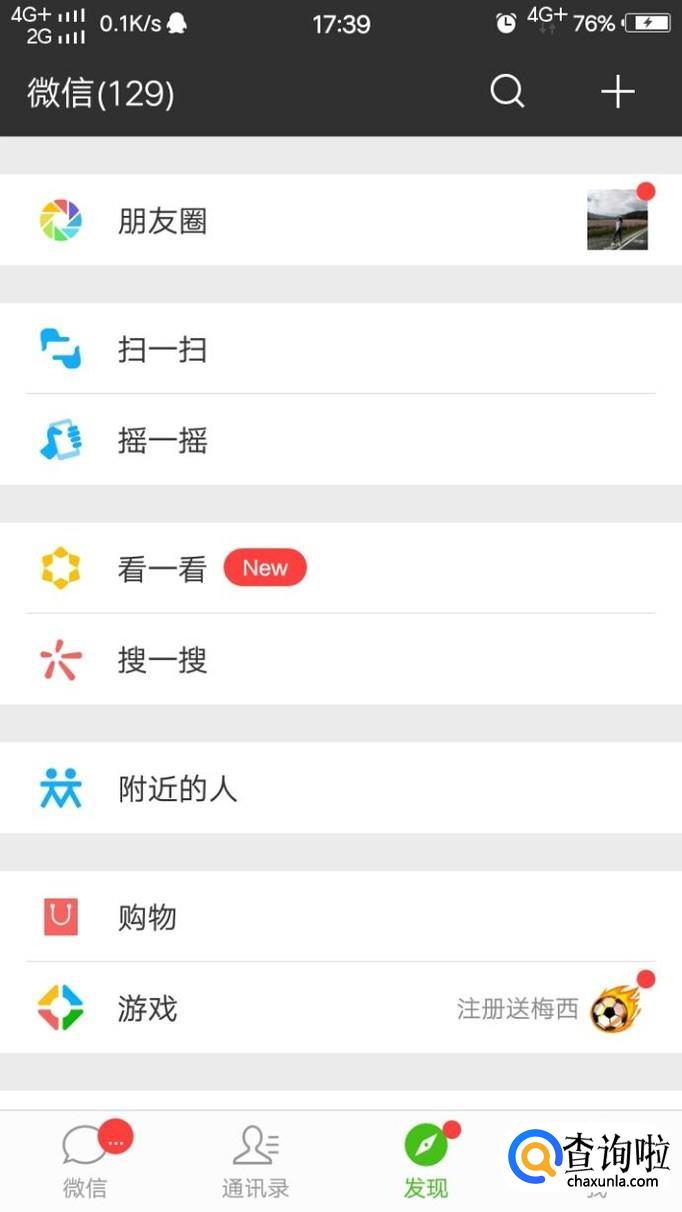 然后,我们在相关页面点击右下角的“发现”,再点击“朋友圈”