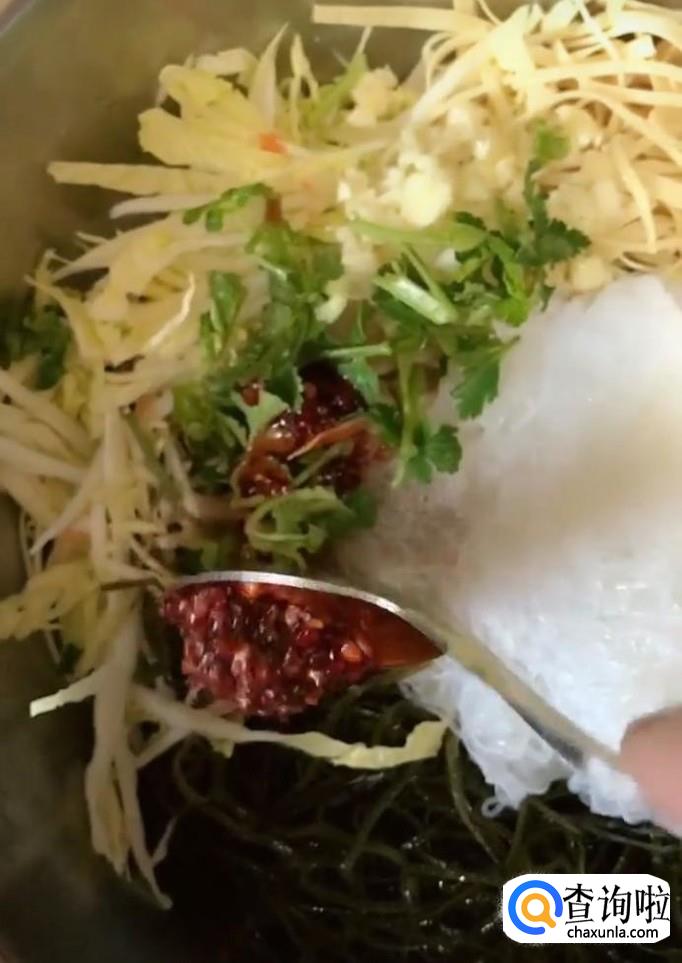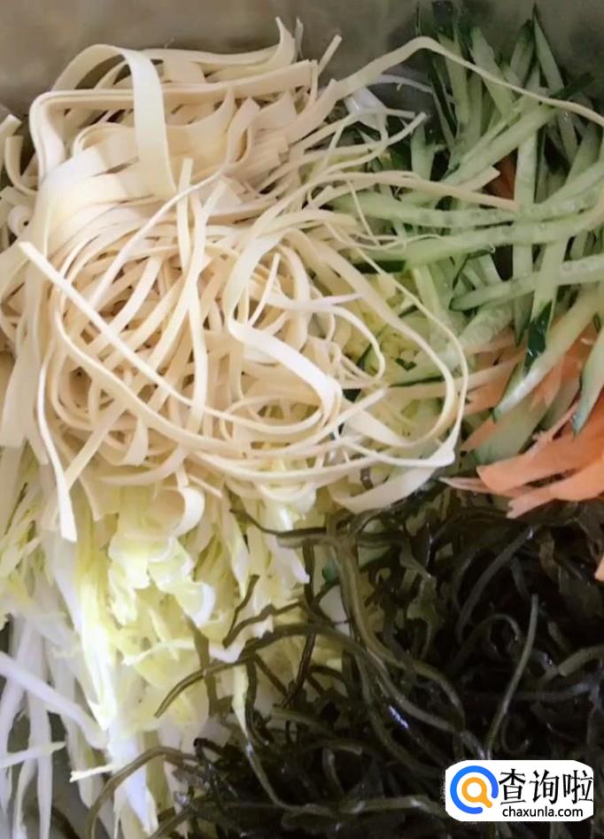 白菜,干豆腐,黄瓜,胡萝卜,海带,粉丝,香菜,料酒油,盐,味精,白糖,陈醋,香油,蒜,干辣椒
