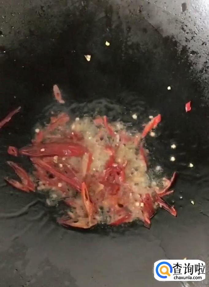 然后我们在锅中烧油,放入干辣椒,烧热以后将热油淋入盆中,带上手套抓拌均匀