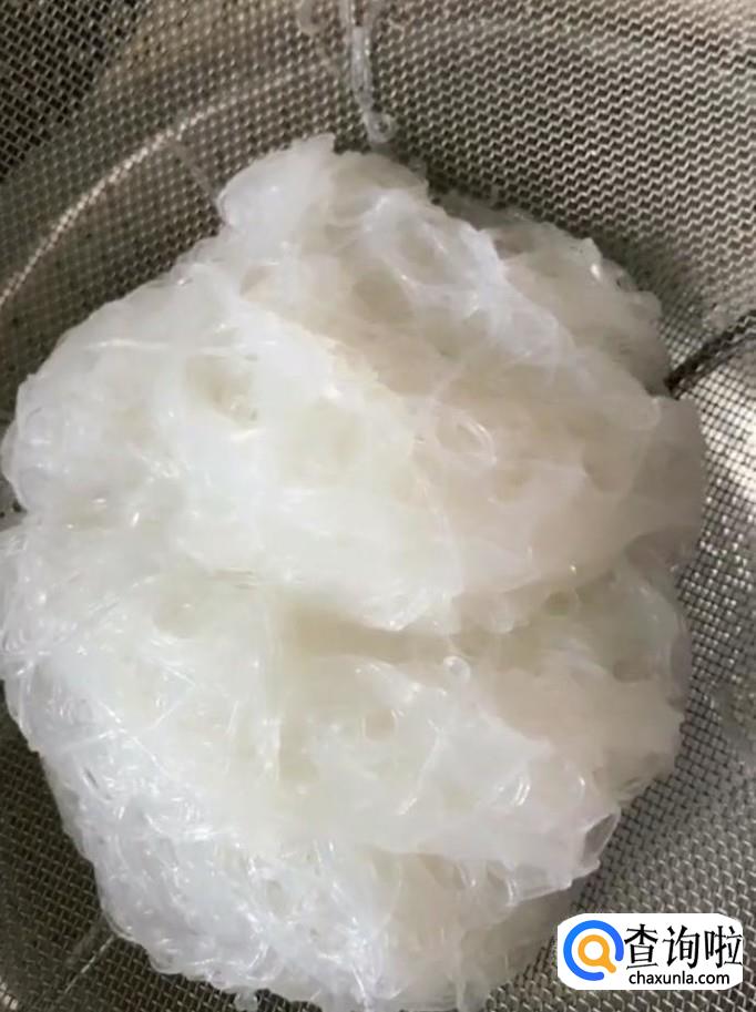 然后我们将粉丝放入热水中煮熟捞出,在凉水中冲凉,控干水分,放入盆中
