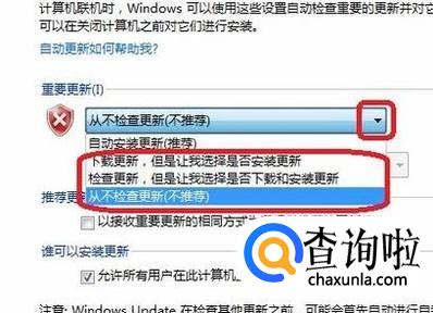 如果想要关闭自动更新,只要选择从不检查更新就可以了。