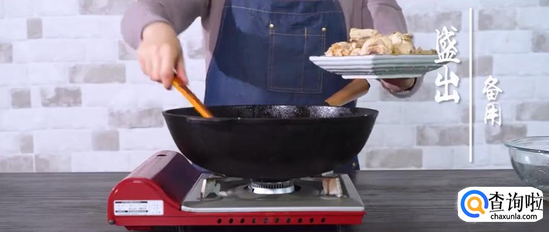 热锅凉油,下鸡肉炒至表面金黄捞出。