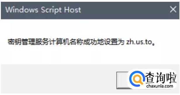 将弹出“密钥管理服务计算机名称成功地设置为zh.us.to“