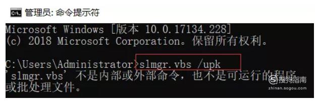 b、输入slmgr.vbs /upk,就会弹出成功卸载产品密钥。