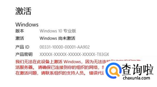会出现下面三种情况:第一种弹出下图结果后,在打开电脑设置->激活->更改产品密钥,输入秘钥:W269N-WFGWX-YVC9B-4J6C9-T83GX最后windows10专业版就成功激活了