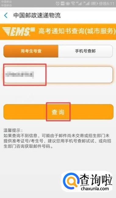 然后我们输入准考证号,然后我们点击查询就可以了。
